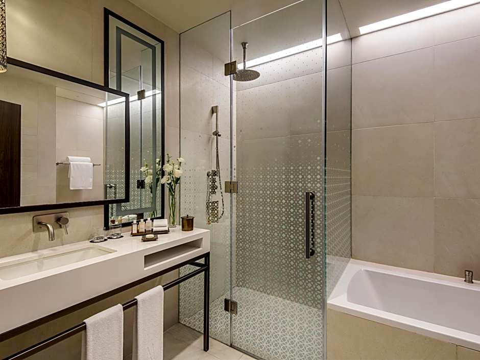 The spacious suite provides air conditioning, soundproof walls, a terrace with city views as well as a private bathroom featuring a bath.